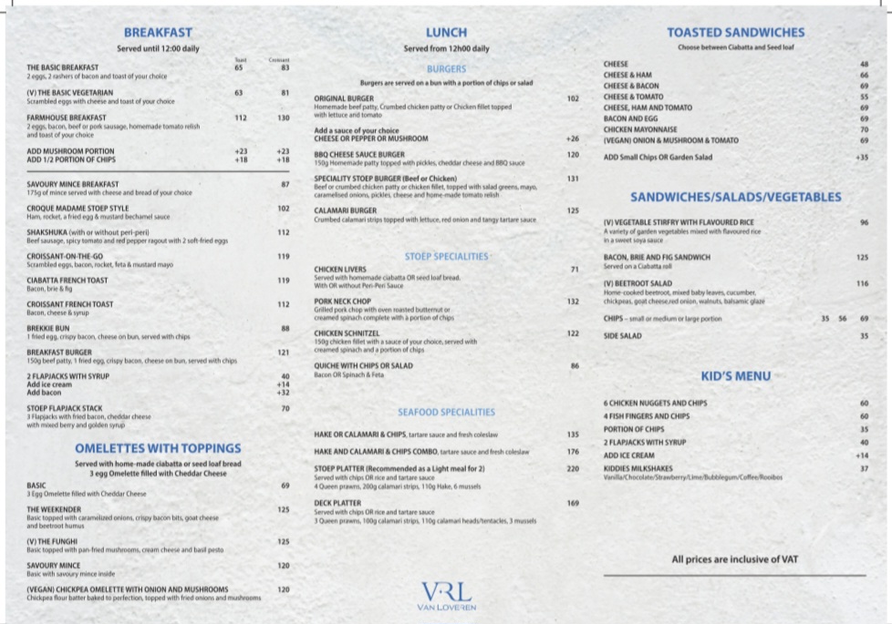 For lunch, don't miss the fresh hake and calamari, paired seamlessly with a glass of Sauvignon Blanc. With a welcoming staff and relaxed atmosphere, Stoep Cafè promises an enjoyable dining experience that keeps patrons returning for more.